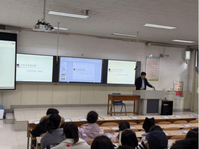 11月11日下午,本次大赛第二个部分公务员考试指导讲座在立信203阶教举行,本次讲座特邀无码直播