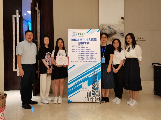 苗迎春老师指导的2020级社会保障研究生团队荣获二等奖,团队成员张兆粟、崔楠、蔡佳辰、范文帅赴宁参加颁奖典礼。