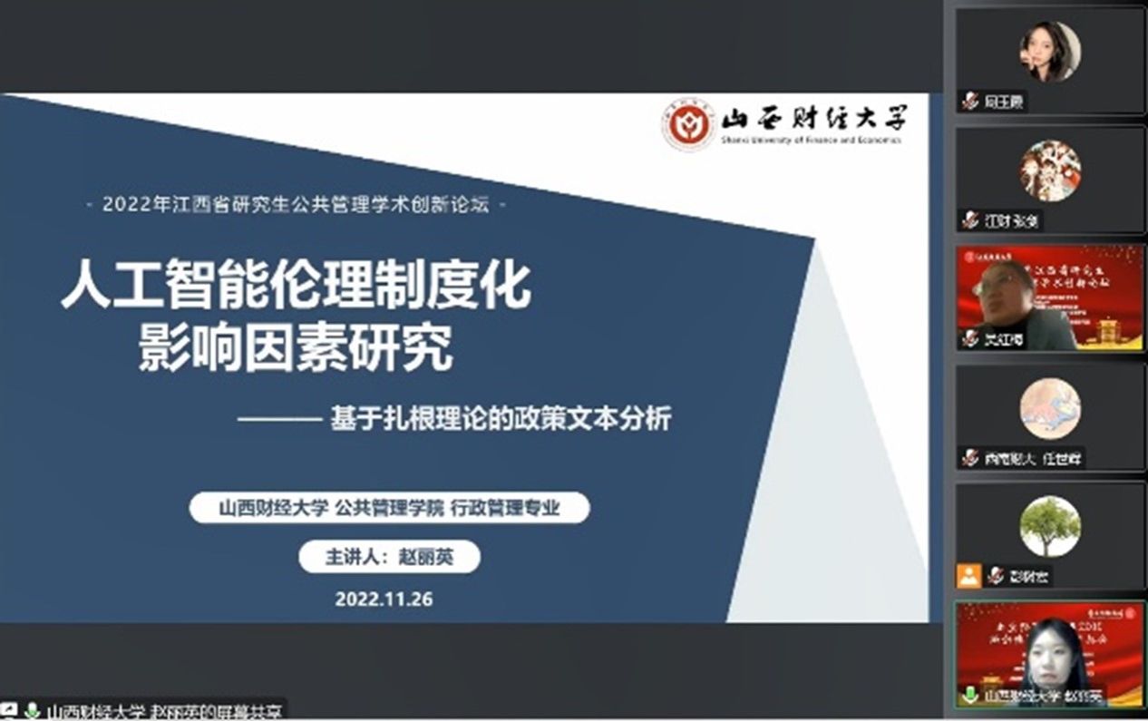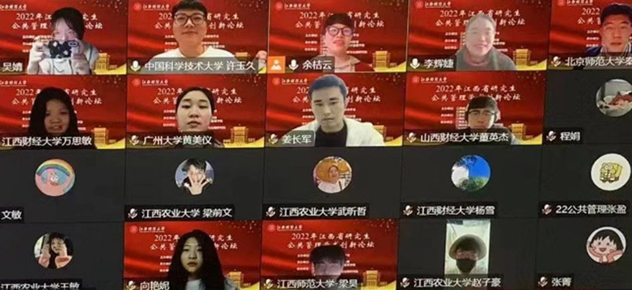 承办的2022年江西省研究生公共管理学术创新论坛以线上方式顺利召开。此次论坛的主题为“数字化时代的公共治理理论与创新”,来自全国公共管理学科的专家学者、硕博研究生共计290余人在线参会。无码直播