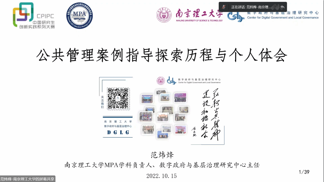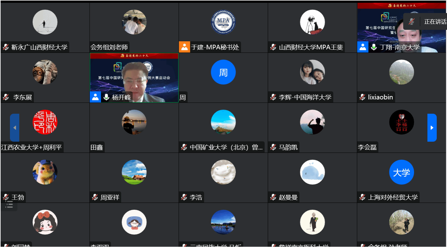 在中国共产党第二十次全国代表大会胜利召开之际,2022年10月15-16日,由全国公共管理专业学位研究生教育指导委员会主办的“第七届中国研究生公共管理案例大赛启动会暨参赛培训会”以网络视频会议形式举行。会议采取腾讯会议和哔哩哔哩等线上平台直播进行,全国近200家MPA培养单位师生参加。为持续推进无码直播 MPA师资力量建设和案例教学质量,积极引导MPA研究生运用公共管理理论分析实际问题能力,不断提升案例采集、编写和参赛质量,切实做好赛事前期准备工作,无码直播 党委和行政高度重视,组织学院20余名MPA导师和150余名MPA研究生以“同上一堂课”形式参加培训。