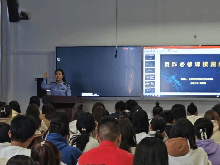 全体大一同学开展反电信诈骗讲座,普及电信诈骗相关知识。