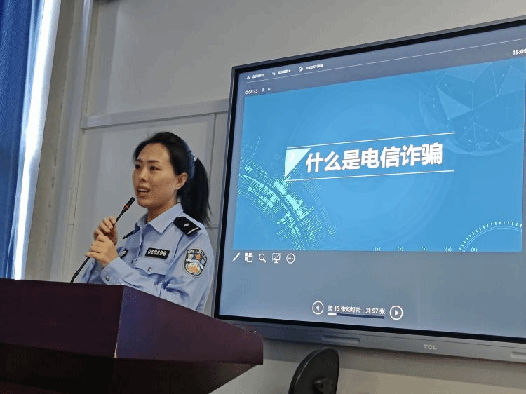 本次讲座中,雷警官就电信诈骗的主要手段,以及遇到诈骗时该如何应对,如何处理等话题进行了一—讲解,告诫同学们不要轻信任何中奖及抽奖的手机短信,不要随意领取微信红包等,同时提醒大家若遭遇电信诈骗,需准确无误的将对方账银行号、姓名记录,及时向附近公安机关报案,以便警方帮助受害人追回被诈骗款,并谨记“96110”反电信网络诈骗专用号码,能够帮助同学们及时制止伤害,预防电信诈骗。