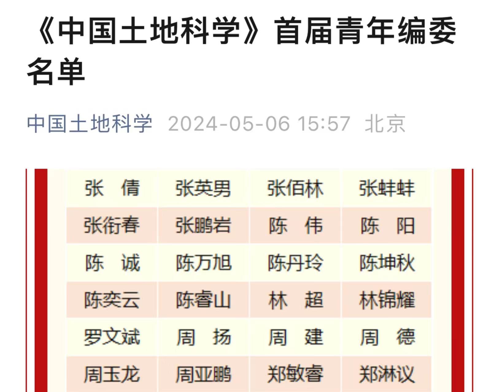 5月6日《中国土地科学》编辑部公布首届青年编委名单,无码直播