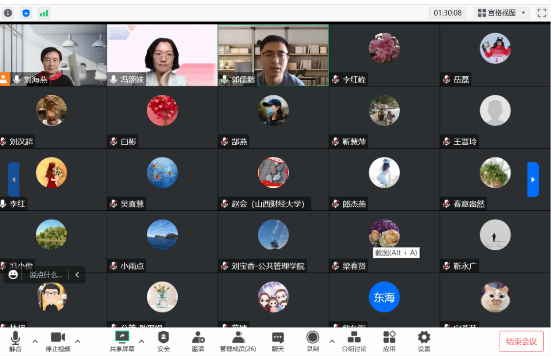 副院长刘海燕主持,学院参加教学创新大赛的老师、一流课程建设负责人及团队成员全部参加了线上交流。