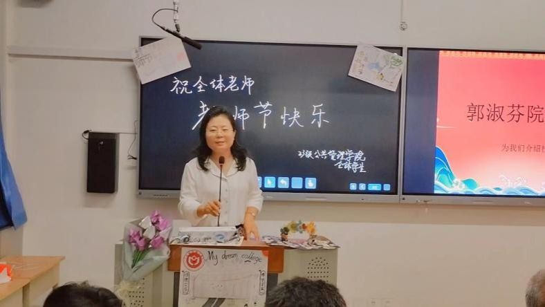 正值教师节,劳动与社会保障班张尹家、行政管理班曹碧怡、土地资源管理班焦一博三位同学朗诵了诗歌《致敬老师》。饱满的精神,激昂的文字,坚定的话语,道出了心中洋溢的感恩之情,深情表达了对老师的爱戴和尊敬。