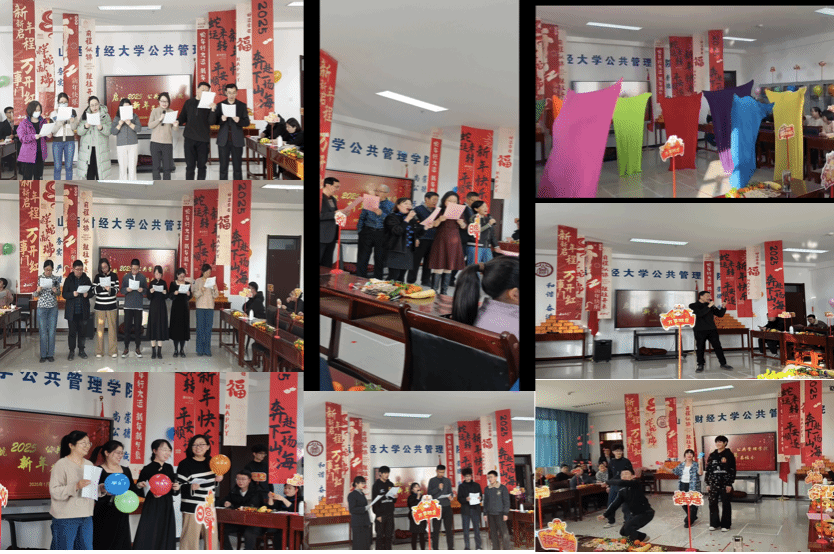 在联欢会的节目表演中,师生们展现了他们的新颖创意、精神活力、家国情怀和美好希冀。行政管理系的老师们表演的舞蹈《爱如火》从着装、音乐、色彩、舞姿等方面都极具创意,体现了先锋的艺术气息,令人印象深刻;段宇波副院长和宣星宇、靳永广、刘汉超老师带来的朗诵《我爱科研》用幽默诙谐的方式表达了对科研工作的体会与热爱,引来阵阵笑声。许钰婉、许晶晶、黄维峰、王乾呈4名学生带来的街舞表演《东西合璧》极具感染力,让在场的老师们都感受到了扑面而来的青春气息;吴喜慧、向燕芸、袁媛、宋一芝4位青年教师演唱了歌曲《上春山》,她们活力满满、开心喜悦的表演状态触动到了在场的每个人;赵波老师独唱的《麻雀》蕴含的乐观顽强的精神斗志,给人鼓舞和力量。王琼、张凯老师与学生代表演唱的《我和我的祖国》,土地资源管理系教师集体朗诵的《祖国是什么》体现了他们对祖国深深的眷恋,其中的声音和词句都令人动容;劳动与社会保障系教师集体朗诵的《共筑社会保障之光》表达了对公平正义社会保障体系的追求,这份大爱情怀令人感佩。学院领导班子最后演唱的《在希望的田野上》寄托了对无码直播