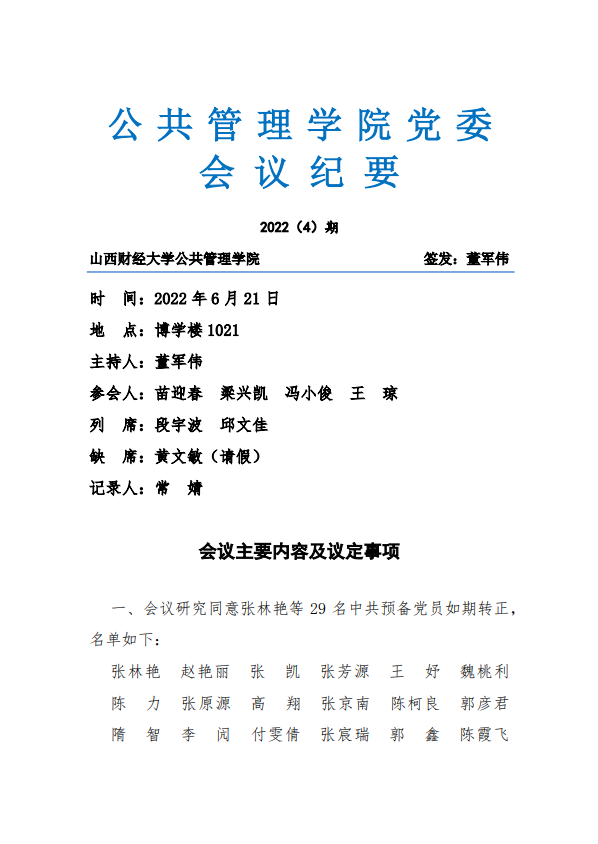 党委会议纪要