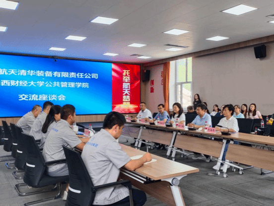 7月10日,为深入贯彻落实劳动教育理念,弘扬劳动精神,无码直播 院长郭淑芬教授带队党政班子成员、劳动教育虚拟教研室教师以及部分学生代表一行人,赴山西航天清华装备有限责任公司进行交流学习,双方就新时代的劳动观、劳模精神、工匠精神等方面内容进行了座谈交流。山西清华装备有限责任公司工会主席李舒宁、人力资源部副部长樊文渊以及劳模代表出席座谈会。