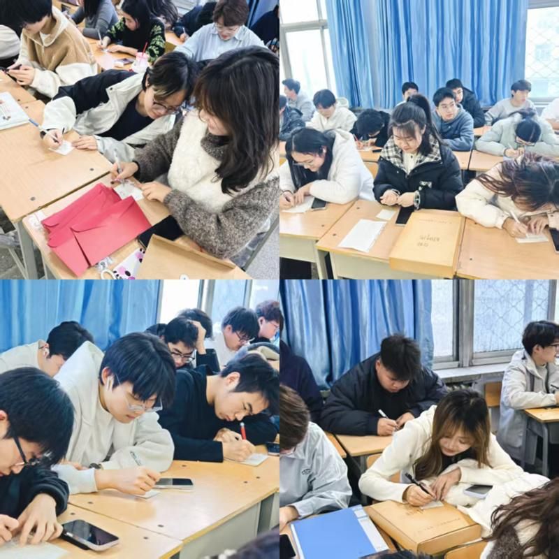 仪式接近尾声,同学们认真写下给四年后自己的信,将当下的憧憬与承诺封存于时光胶囊,与未来定下青春的约定。活动最后,大家领取家书,带着亲人的嘱托与师长的期望,正式迈向成年的崭新旅程。