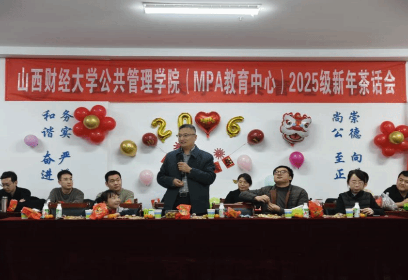 (MPA教育中心)2025级MPA研究生班在学院大会议室举行了新年茶话会。学院副院长冯小俊、段宇波、刘海燕及教师代表与同学们欢聚一堂,共迎新春。
